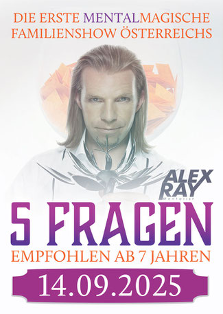 Der international bekannte Mentalist Alex Ray präsentiert seine faszinierenden mentalen Fähigkeiten erstmals einem jüngeren Publikum. Durch interaktive Spiele und verblüffenden Vorführungen liest er die Gedanken der Zuschauer, weiß Dinge lange bevor sie geschehen und ermöglicht sogar den Kindern, selbst zu Gedankenlesern zu werden.